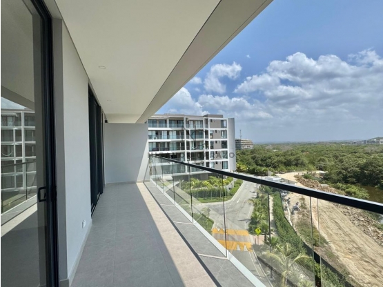 Confortables espacios ideales para dusfrutar del ambiente caribe durante todo el año, perfecto para para ser tu residencia permanente, descansar o generar renta por medio del alquiler en plataformas como Airbnb y similares; este apartamento de 2 habitaciones con amplio baño y vestier privado en la alcoba principal, cocina abierta completamente dotada, area de sala - comedor, 1 comoda alcoba auxiliar con baño social, con excelentes acabados, zona de labores independiente y un parqueadero. Si buscas el lugar ideal para ver los atardeceres y compartir al aire libre, podrás hacerlo en esta espectacular terraza. La altura de piso a techo de 2.5 mts.