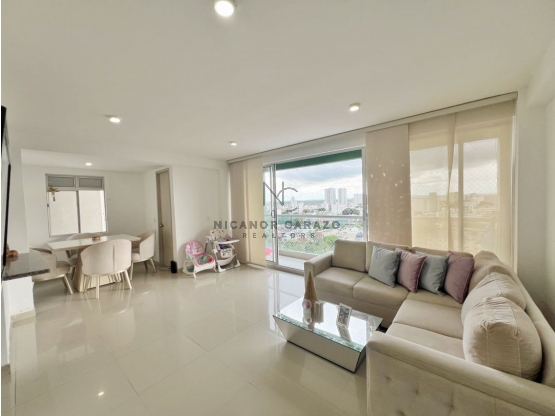 DISTRIBUCIÓN DEL INMUEBLE: Sala - comedor, cocina abierta - Integral, balcòn con espectacular vista exterior, 1 alcoba principal con closet y baño privado, dos alcobas auxiliares con closets, baño compartido, zona de estudio, hall de alcobas, zona de labores, baño social y un parqueadero cubierto.